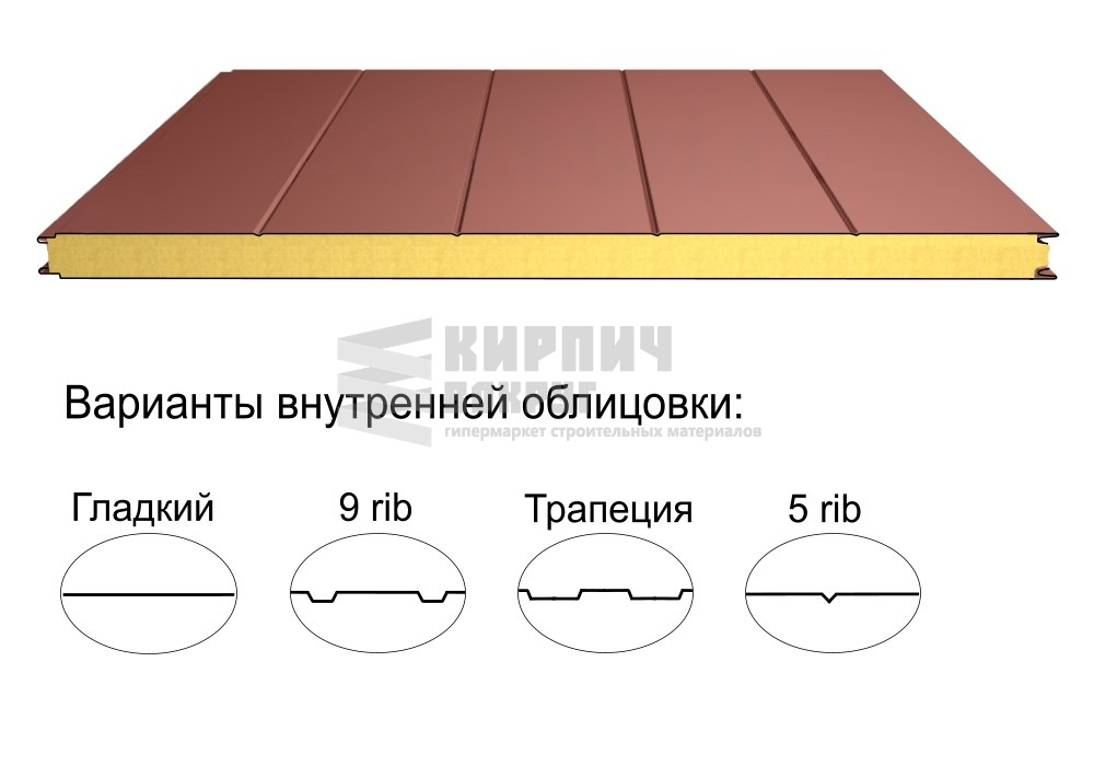 В интернет-магазине "Кирпич Вокруг" Вы можете купить Стеновая трёхслойная сэндвич-панель 5 rib 100мм 1000мм с видимым креплением минеральная вата Полиэстер Доборник в Стерлитамаке, а наши специалисты готовы вам помочь с выбором по адресу: , или оказать консультацию по телефону: .